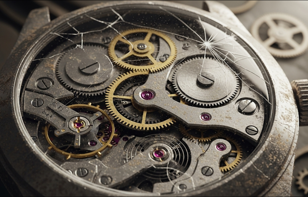 部品の破損: 摩耗が限界に達すると、歯車の歯が欠けたり、軸が折れたりして時計が完全に停止します。