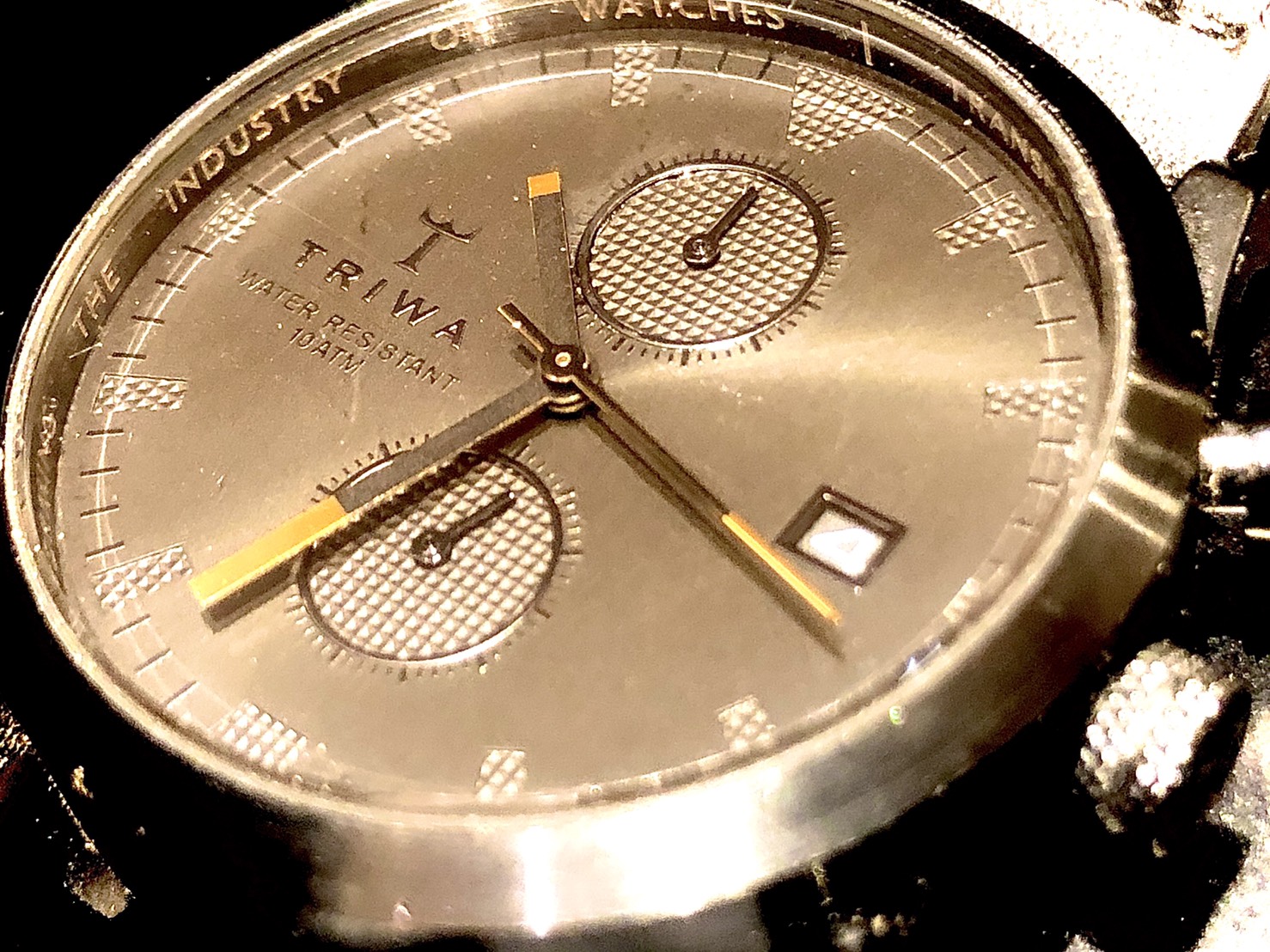 クロノグラフ機能を搭載した「NEVIL(ネヴィル)」もトリワを代表する人気モデルの一つです。多機能なクロノグラフモデルは、通常の時計よりも構造が複雑なため、電池交換にはより一層の注意が求められます。