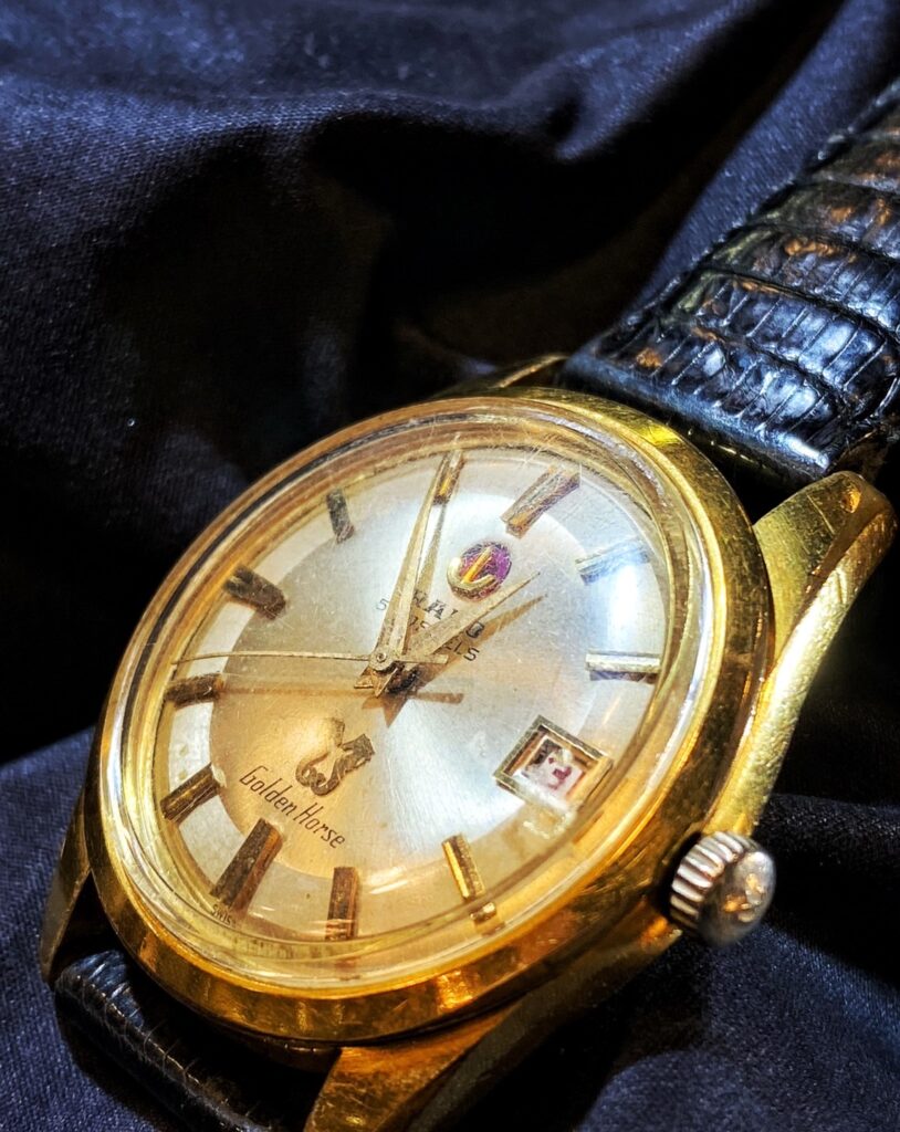 ゴールデンホースは、1957年に発表された腕時計で、高価な貴金属で作られステータスシンボルだった腕時計を、ラドーが気軽に着けられるものにした画期的なお時計です。