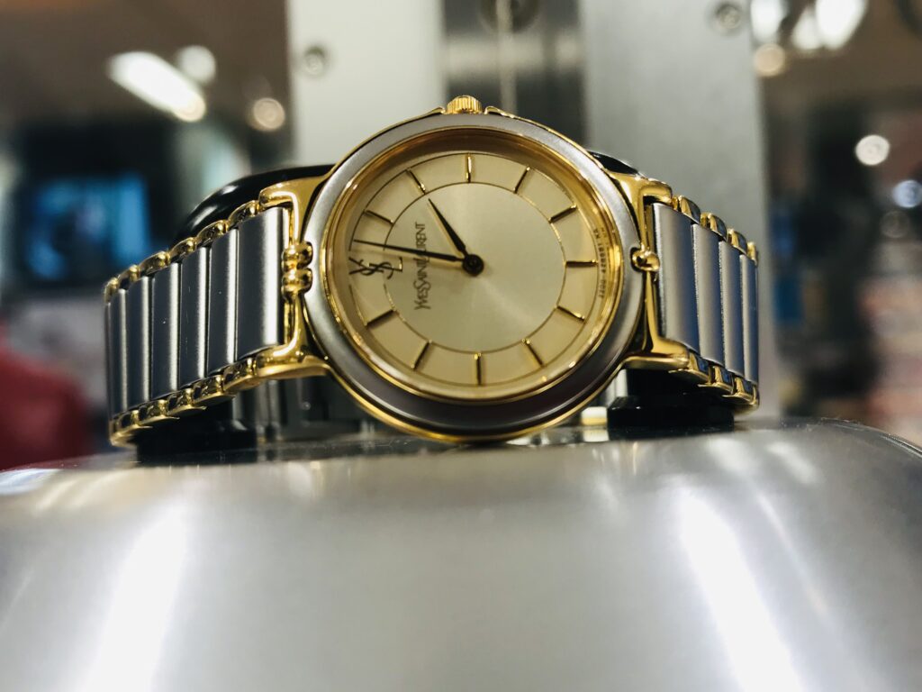 この度お預かり致しましたお品物はイヴ・サンローランのクォーツ時計でございます。