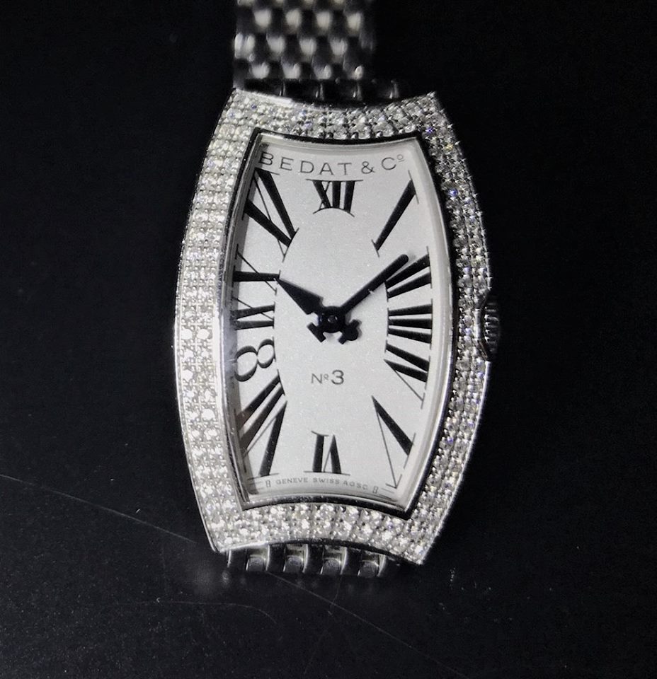 ケースにはダイヤモンドがあしらわれており、腕に目が行くゴージャスなデザインです。