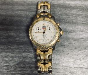 こちらは創立160年以上の歴史を持つスイスの高級腕時計ブランド、タグ・ホイヤーでございます。クロノグラフを筆頭に、男心を揺さぶるスポーティーでカッコいい時計作りを得意としています。デザインは勿論、高級時計に相応しいハイスペックな性能も併せ持っているお時計でございます。