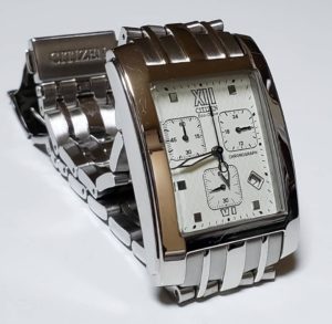 この時計は、題名の通り「エコドライブ」、すなわち、シチズンが誇るソーラー時計になります。