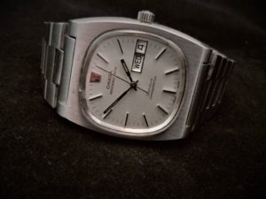 1970年代に製造されたモデルで、現在ほどクォーツモデルが普及する黎明期に発表されていた、音叉を使用したモデルです。