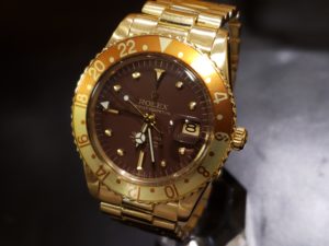 GMTマスターは世界を飛び回るパイロットのために作られたモデルです。 黄色い針は24時間計で、回転式ベゼルの2色は昼夜を表しています。 2つのタイムゾーンがひと目でわかりますので、海外へよく行かれる方にはとても便利な機能です。
