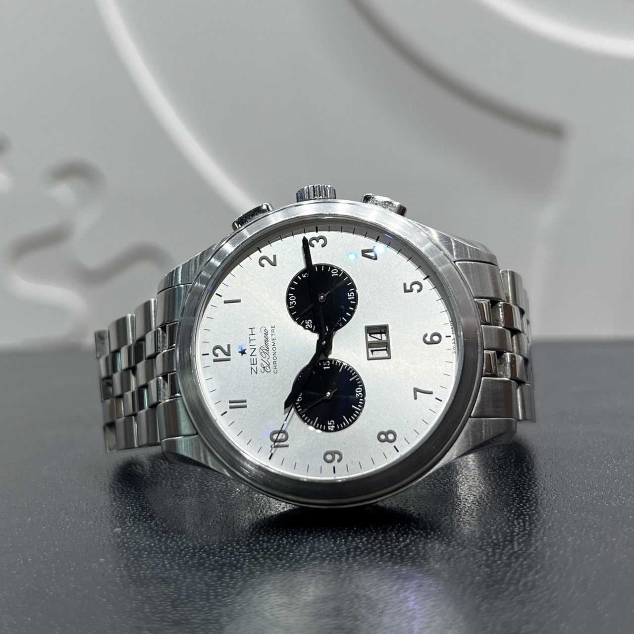 今回こちらのゼニスのお時計をオーバーホールでお預かり致しました! デザインも素敵でとてもエレガントなお時計です。