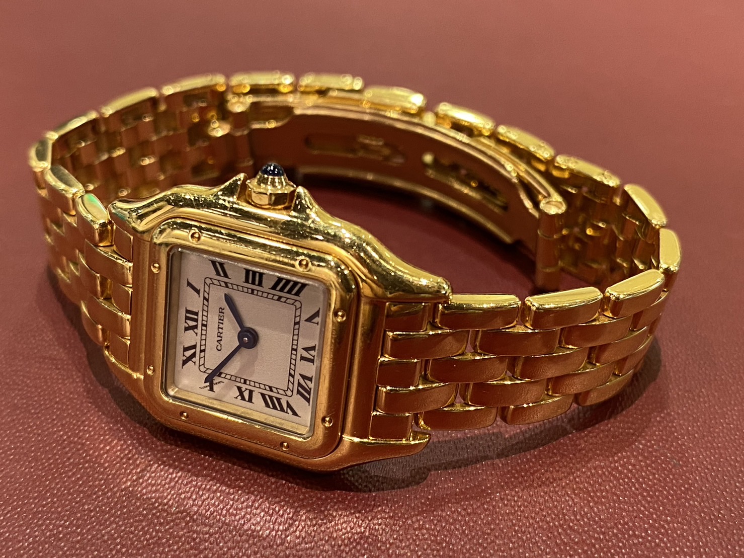 今回こちらのカルティエを承りました! 1983年に登場したパンテール。 フランス語で豹を意味しており、豹はカルティエを象徴する動物でもあります。 しなやかなブレスレットは豹を表し、気高く上品さ溢れるデザインは多くの女性から人気を集めており、 2008年に1度生産終了となりましたが、2017年に復活しカルティエのベストセラーウォッチになりました。