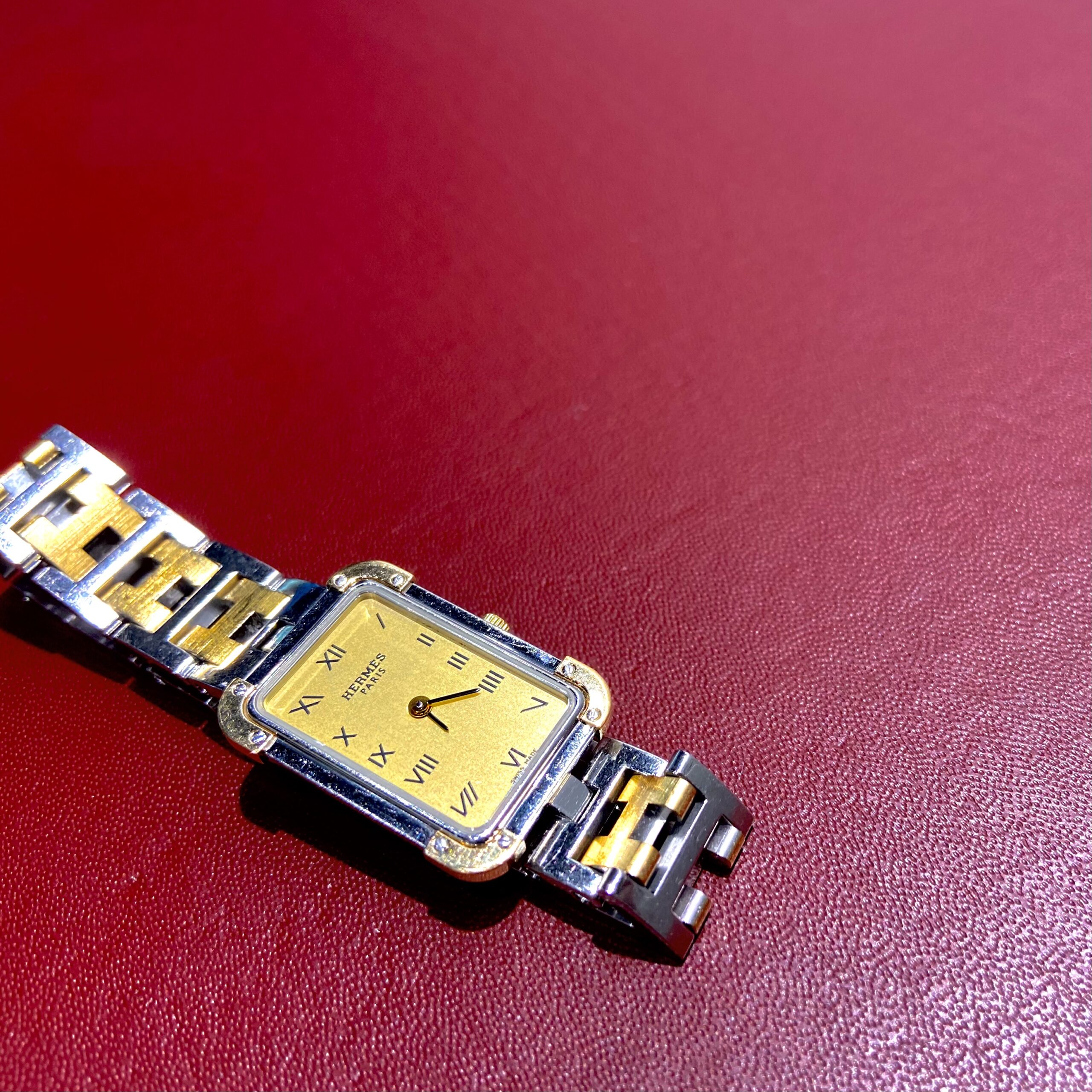 今回、エルメスのお時計の分解掃除をさせて頂きました。
