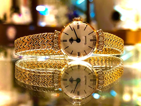 ロゼモンの腕時計をお預かりしました。 ケースの周りについた透明石がかわいいですね。