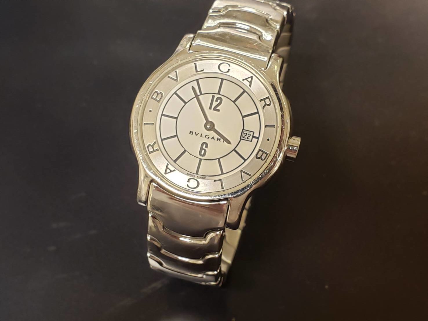 ブルガリ ソロテンポでございます。 白でシンプルにまとまった文字盤はさわやかな印象を与えてくれます。 こちらはメンテナンスでお預かり致しました。 検査したところ磁気帯びが見受けられました。パソコン、スマートフォンや電化製品に近づけると、磁力の影響を受け、進みなど様々な影響が出てきます。 なるべくそれらのものに近づけないよう、ご注意ください。