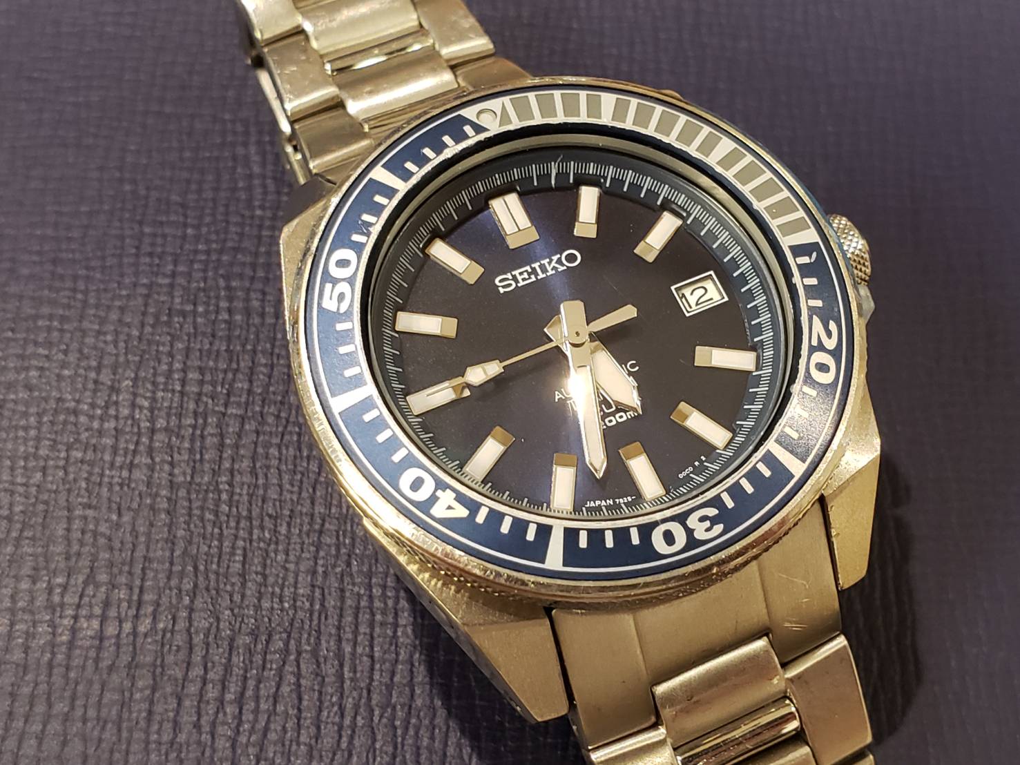この度オーバーホールでお預かり致しましたお品物は、セイコーダイバーズウオッチでございます。 チタン製のケースで重量が軽く、水泳や潜水時でも邪魔にならなそうです。 がっしりとしたデザインが頼もしく、カッコいいですね! こちらはお客様がとても思い入れのあるウォッチで、他店で修理を断られてしまったそうです。 他店で断られてしまった時計でも諦めず、当店へ一度ご相談くださいませ!