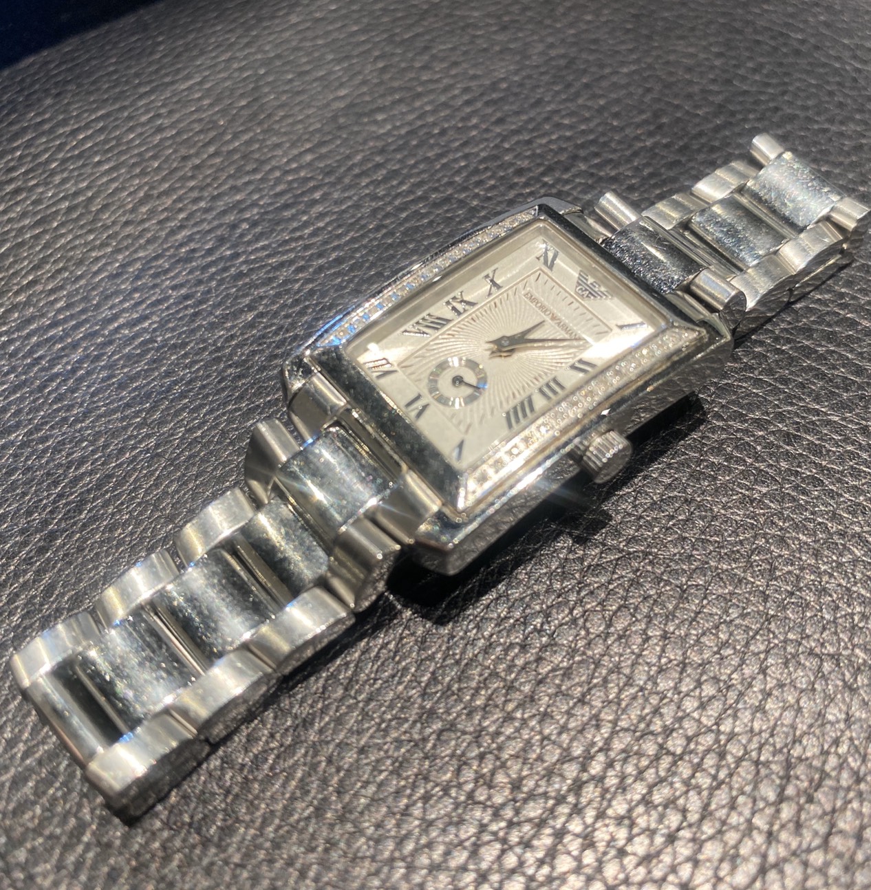 今回ご紹介する時計はEMPORIO ARMANIの腕時計です。 ジョルジオ アルマーニのセカンドラインとして若い世代の男性からも絶大な支持を集めるエンポリオ アルマーニ。 フォーマルウェアの名門ブランドならではの、上品でスタイリッシュなメンズ腕時計が多く人気の時計です。