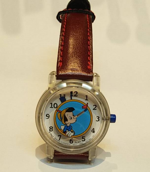 今回ご紹介する時計はディズニーウォッチ ピノキオの腕時計です。 知らない方はいらっしゃらないくらい有名なブランドです。 ディズニーと言えば老若男女問わず大人気。 今回はそんなディズニー作品のピノキオのデザインの時計をお持ちくださいました。