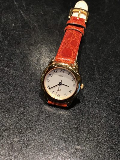 今回お持込み頂きました時計はSEIKOの腕時計です。 シンプルな文字盤にアラビア数字のインデックスが付いています。見やすくて、使いやすいお時計です。