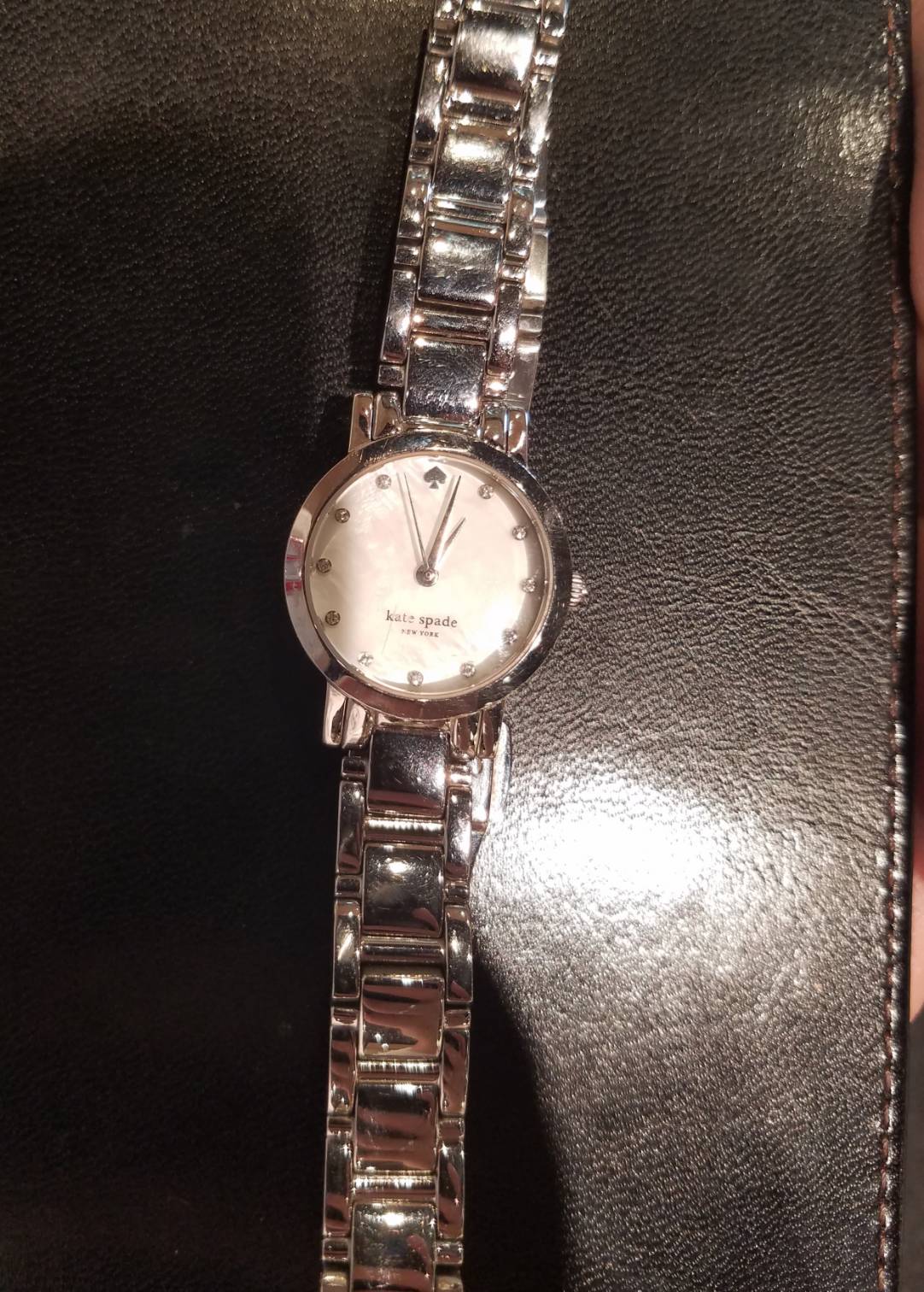 今回お持込みくださいました時計はケイトスペードの時計です。 女性に人気の華奢なフォルムに12時のインデックスがスペード♠マークになっていて可愛らしいデザインの時計です!