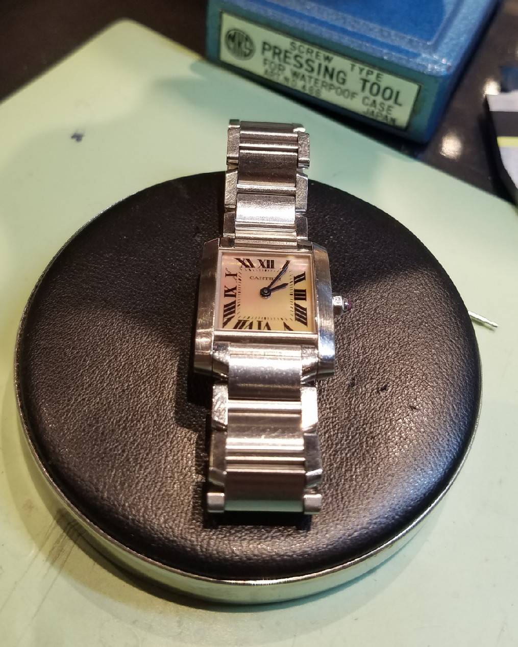 この度お預りしました時計はカルティエの腕時計です。 電池交換してほしいとお持ちくださいました! 時計屋はあっても修理も受け持っているお店に驚かれており 時計屋で断られた他の時計もまた次回お持ち下さるとの事。