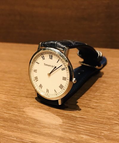 今回、当店にお持込み頂きましたお時計は、Tiffanyのお時計です。 電池交換でお預りしました。最近では珍しい薄型のケースです。シンプルなデザインですが美しくスマートなお品物です。