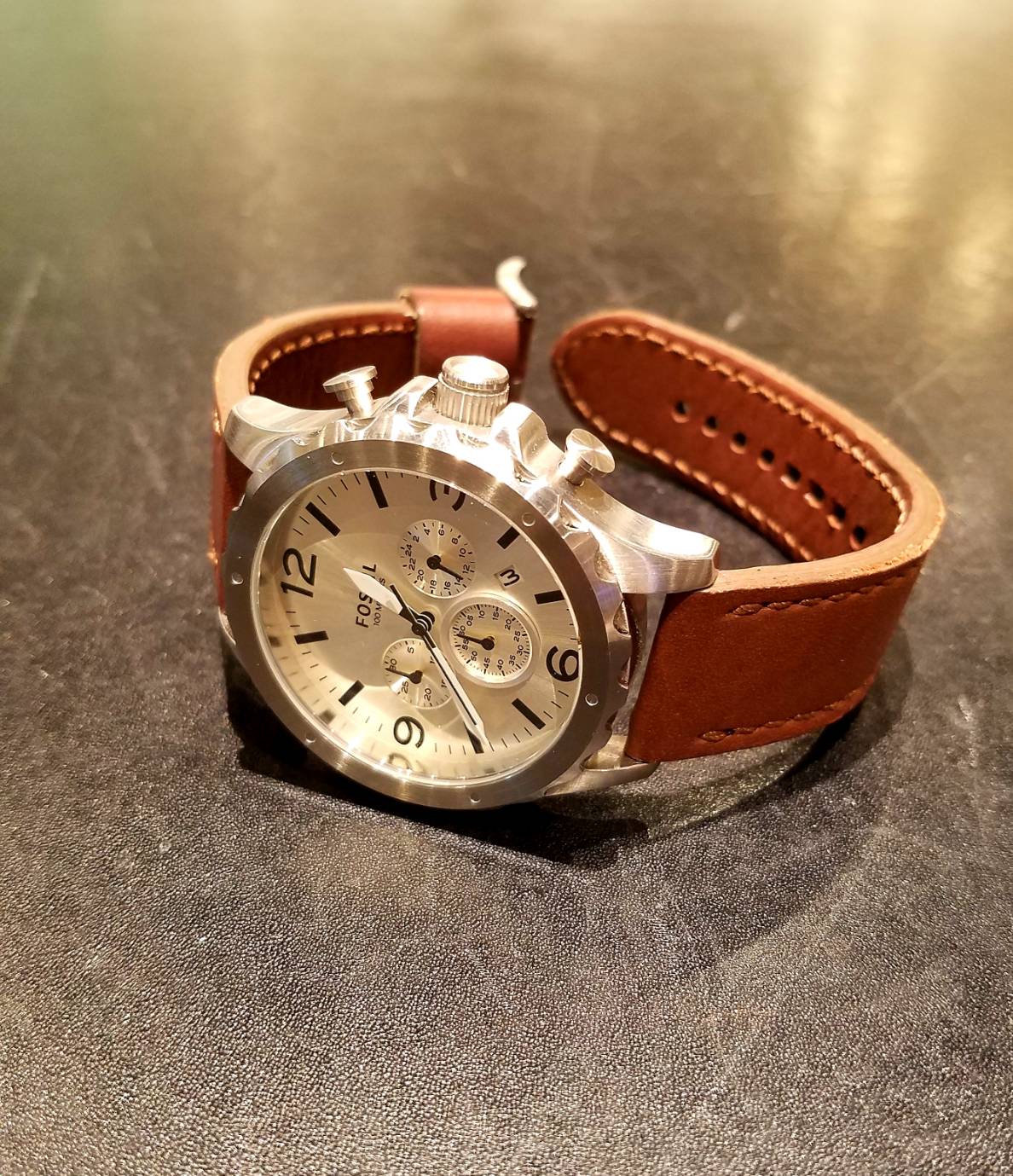 スタイリッシュで手ごろなファッションウォッチとして有名なフォッシル。 ベンド部分は厚手のデザインになっており、明るい茶色をチョイスした可愛らしい時計です。