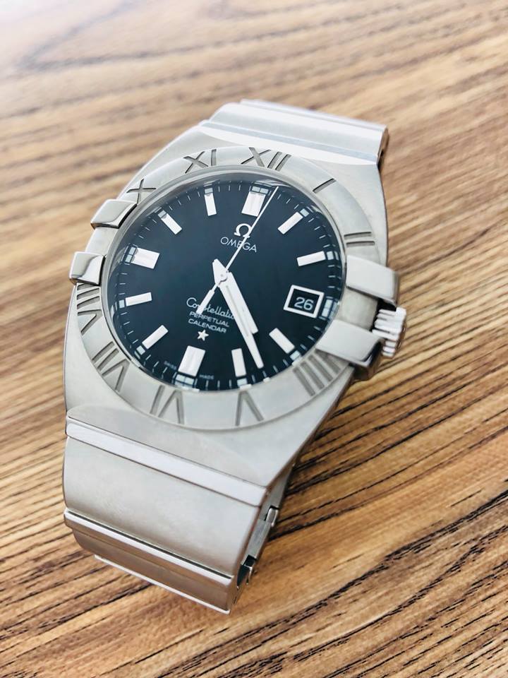 オメガのパーペチュアルカレンダーを電池交換でお預かり致しました。 永久カレンダーがついてる場合は通常の時刻合わせとは異なりますので数日預かりです。