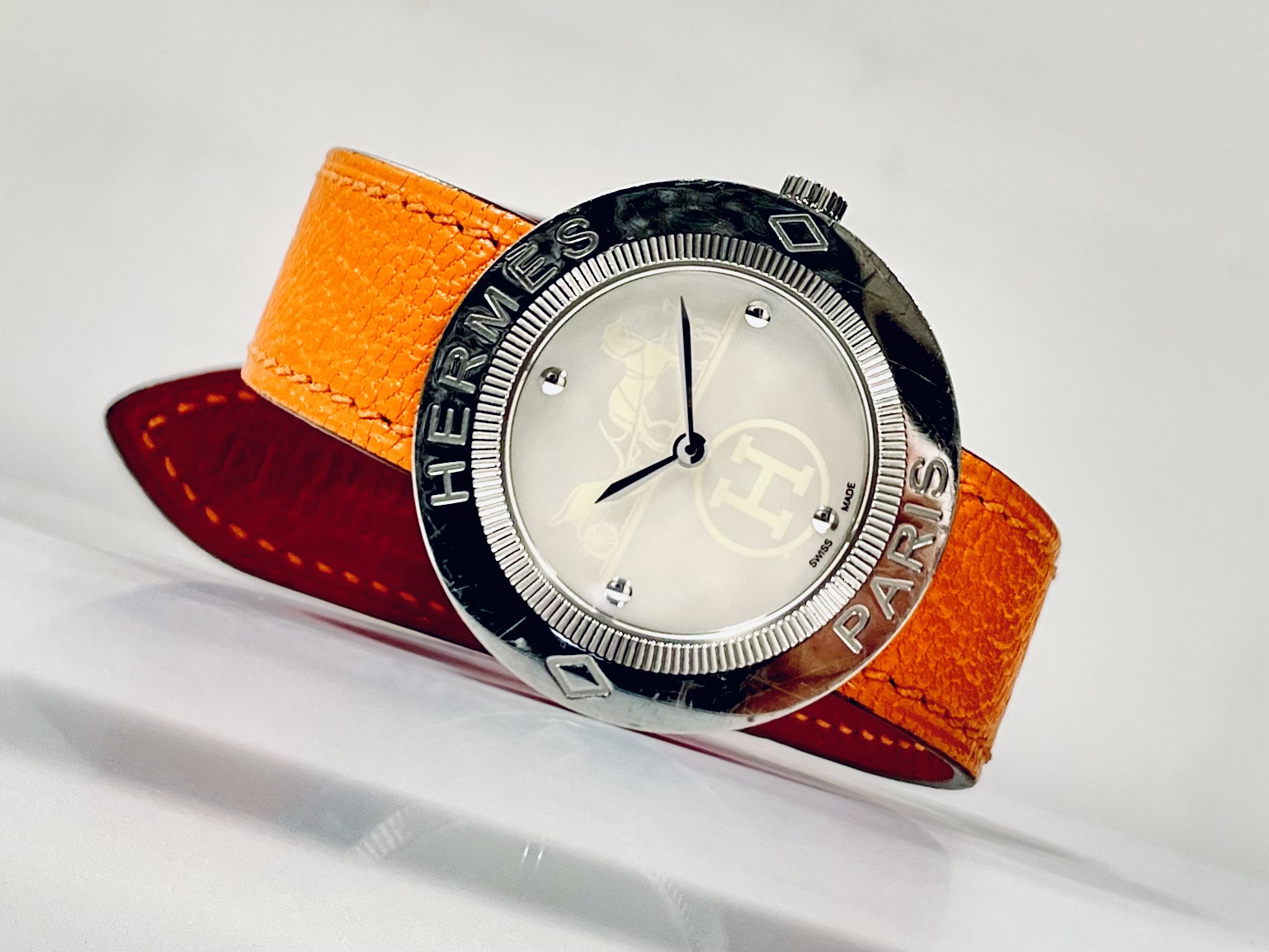 こちらのエルメスのお時計の電池交換を承りました。