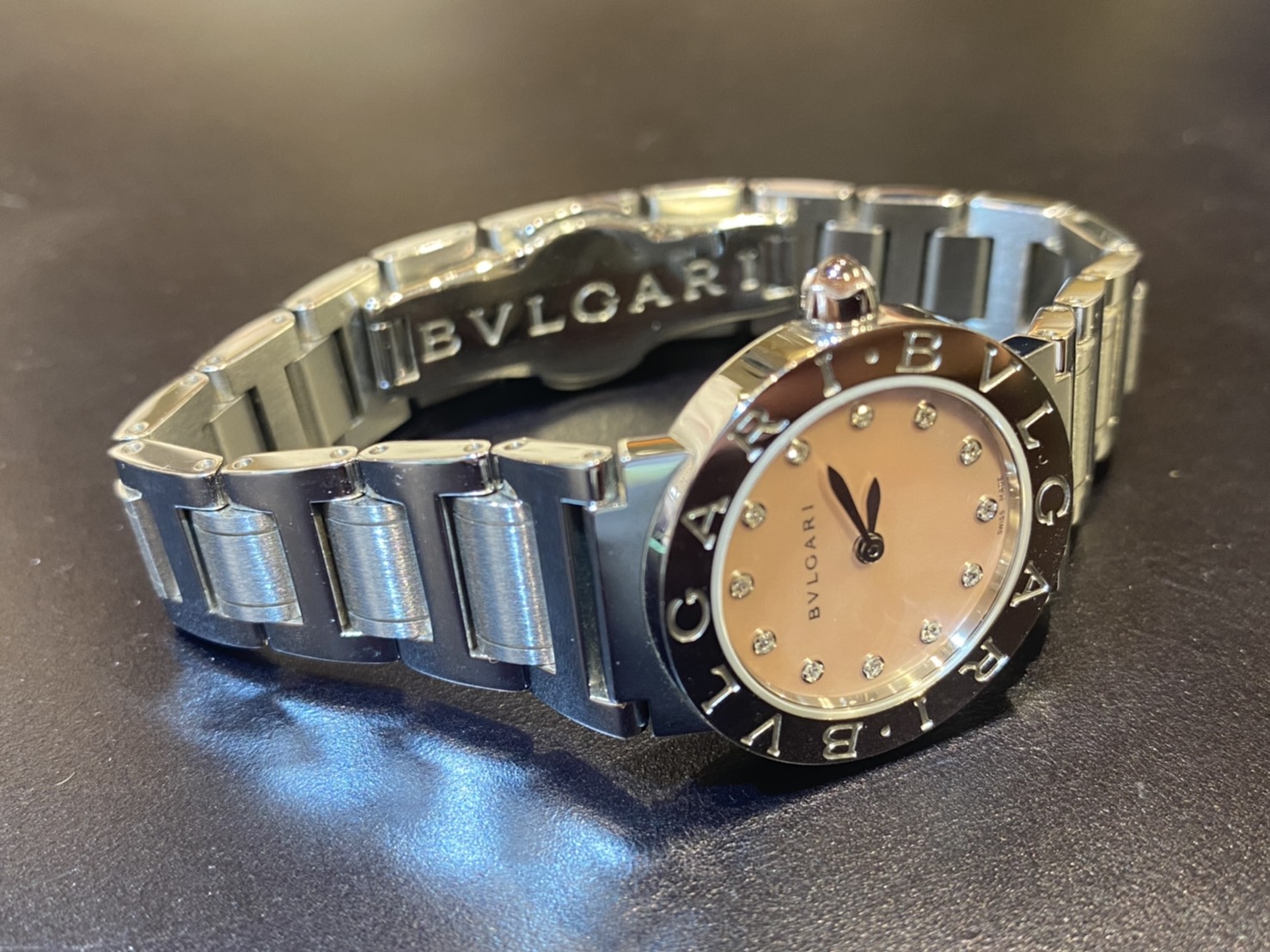 BVLGARI ピンク文字盤のお時計になります。