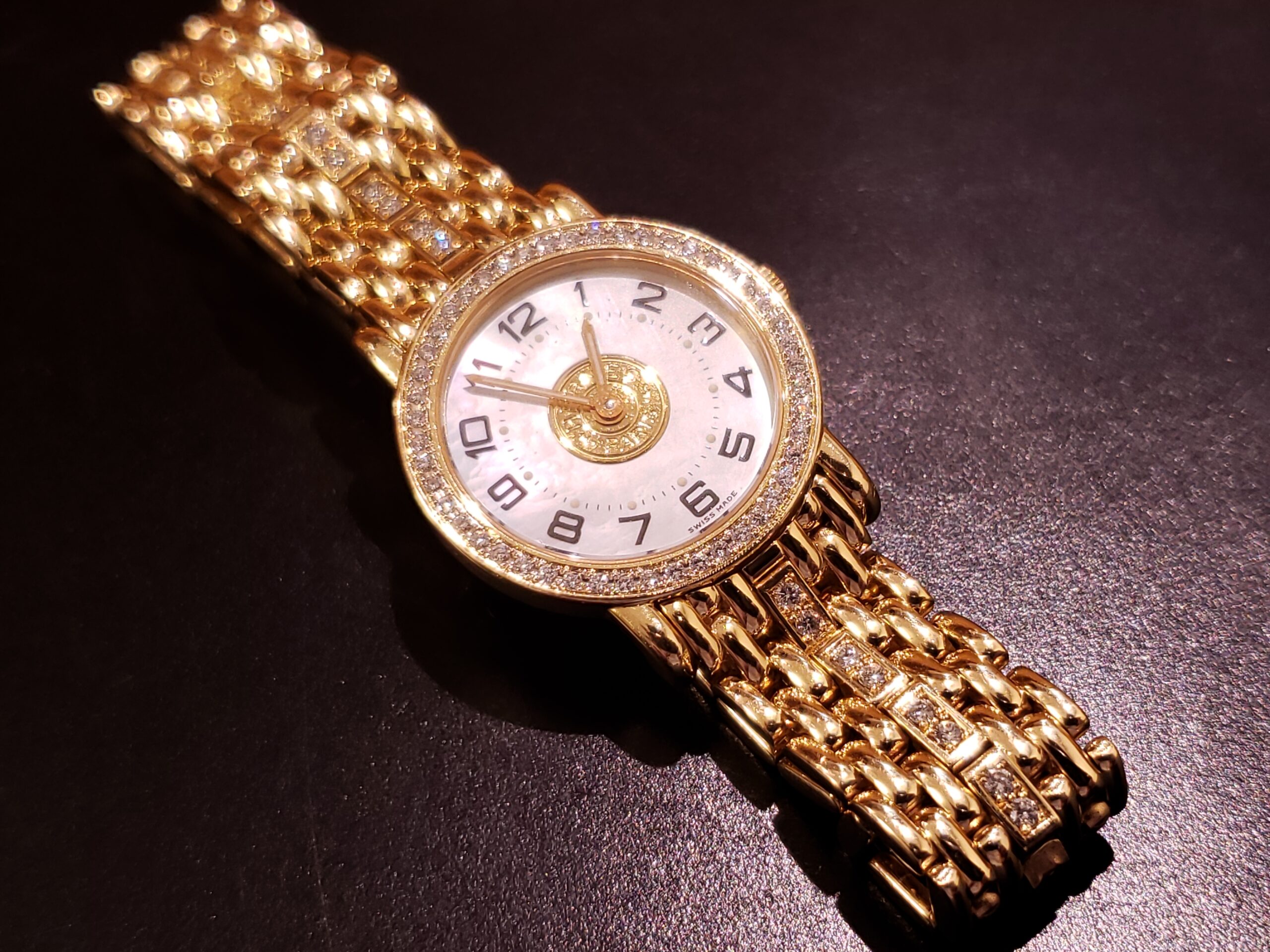 エルメスでございます。 金無垢、ダイヤ入りの美しい時計ですね。