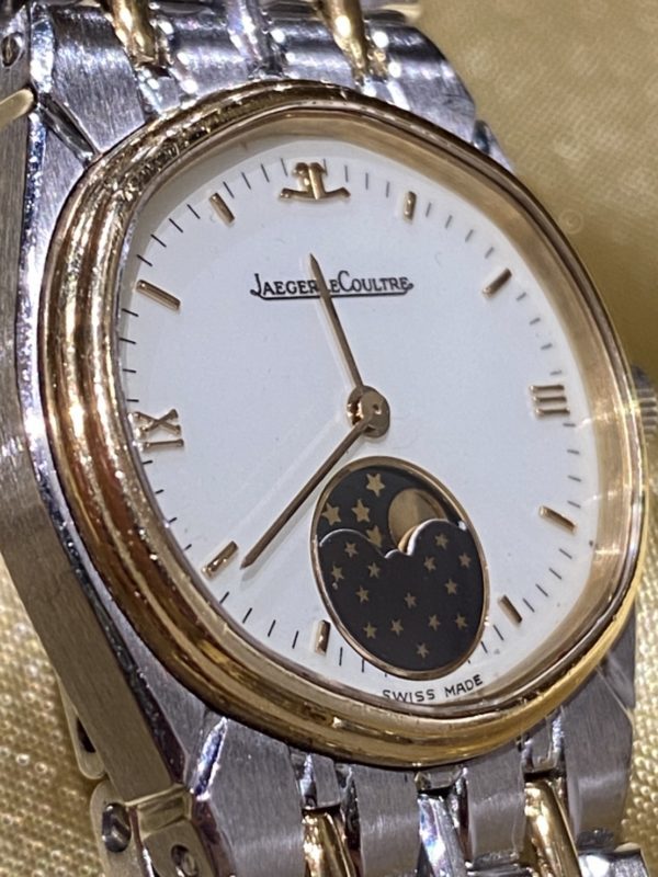 ムーンフェイズ付きのジャガールクルトの電池交換、パッキン交換、ケースの洗浄をさせていただきました。