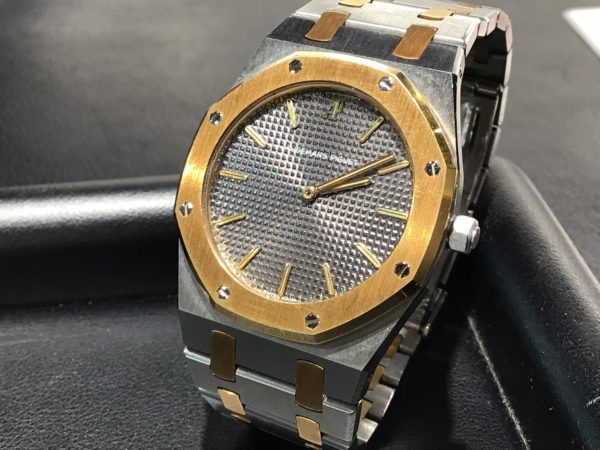 この度はオーデマ・ピゲのロイヤルオークをお預かり致しました。 金色と銀色のコンビがとても高級感を際立たせております。