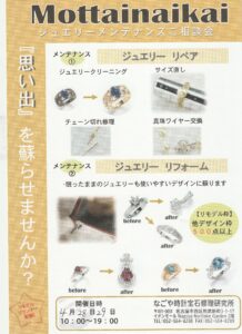 「思い出」を蘇らせませんか? ジュエリーのリペアやリフォームのご相談会を開催致します。