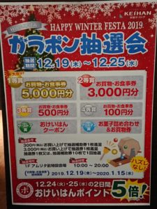 12/19(木)~12/25(水)に、京阪ザ・ストアでお買い上げ額に応じて抽選券を配布いたします!!