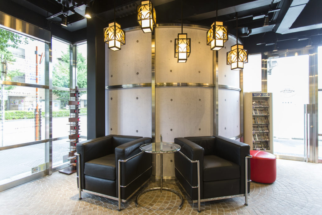 なので、時計の聖地スイスのラ・ショー・ドフォン出身の建築デザイナー「ル・コルビジェ」 がデザインしたソファーが当店「はらじゅく時計宝石修理研究所」にございます。