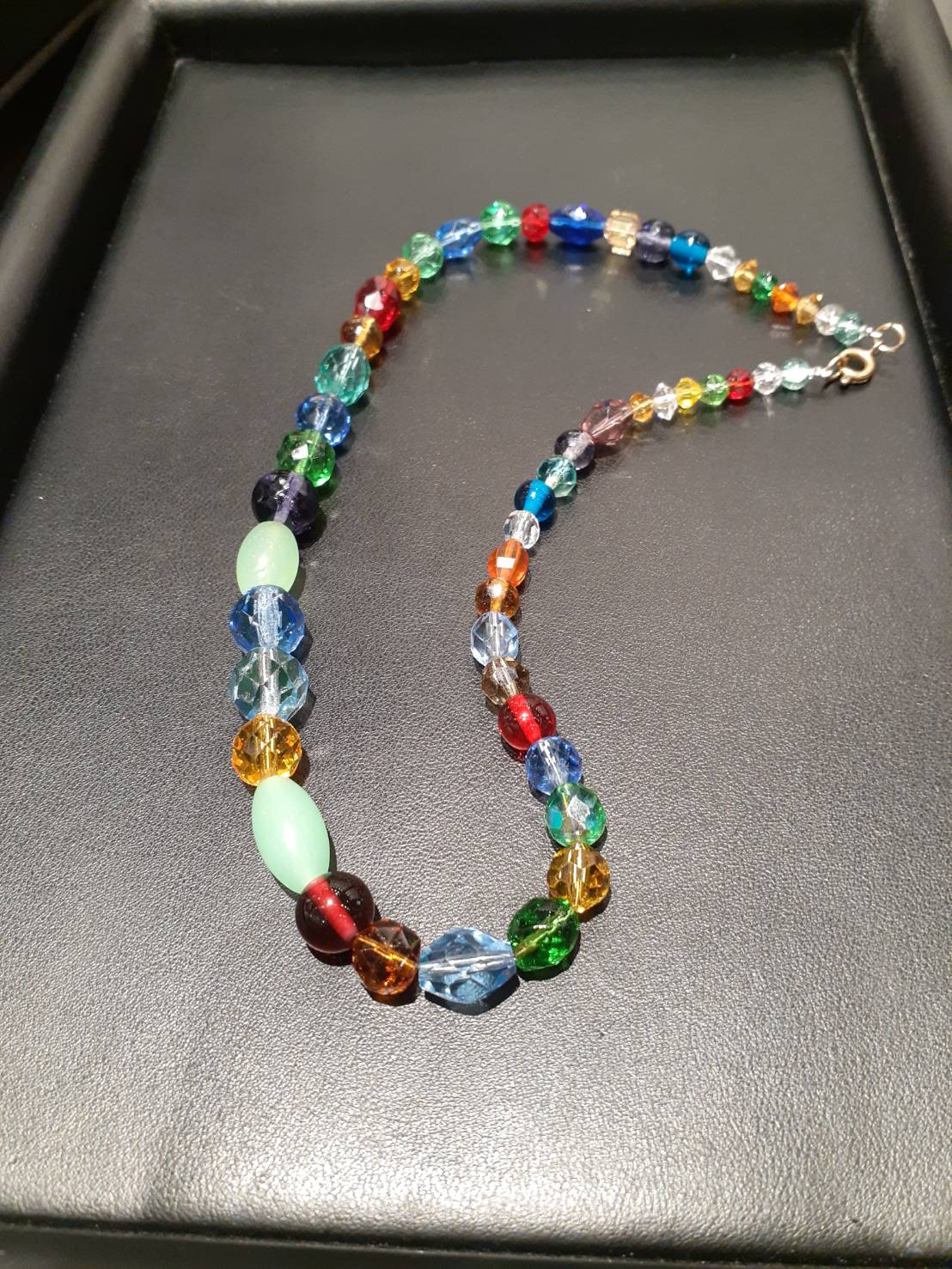 ネックレスの糸替え修理でご来店頂きました。 カラフルな石の色使いで大変綺麗ですね。