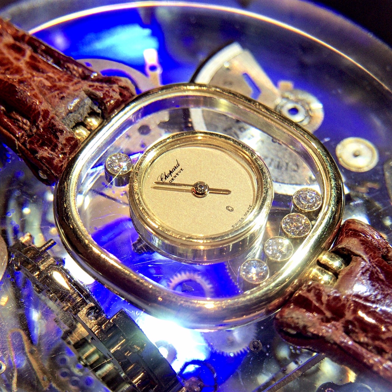 今回こちらのショパールのお時計の分解掃除をおこないました。