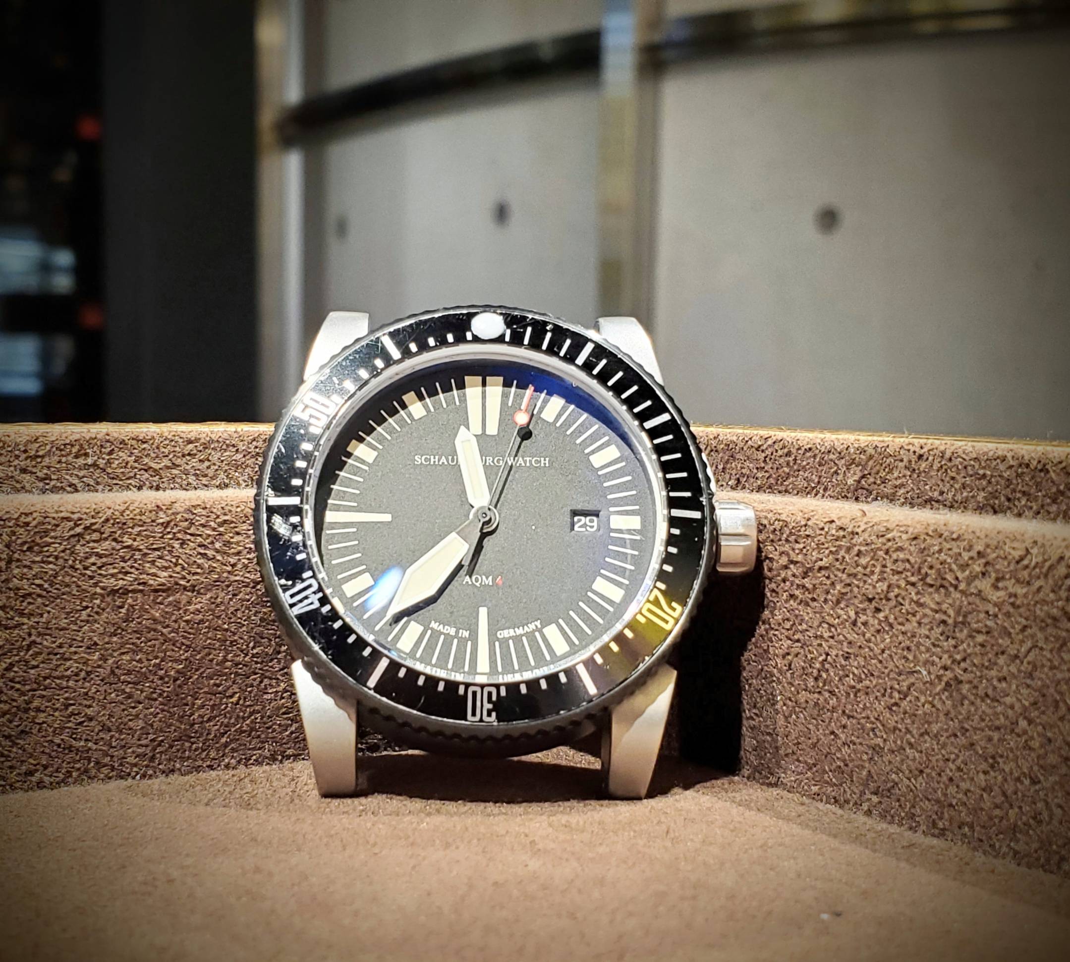 シャウボーグ AQM4のベゼルのルミナスポイントの修理を承りました。