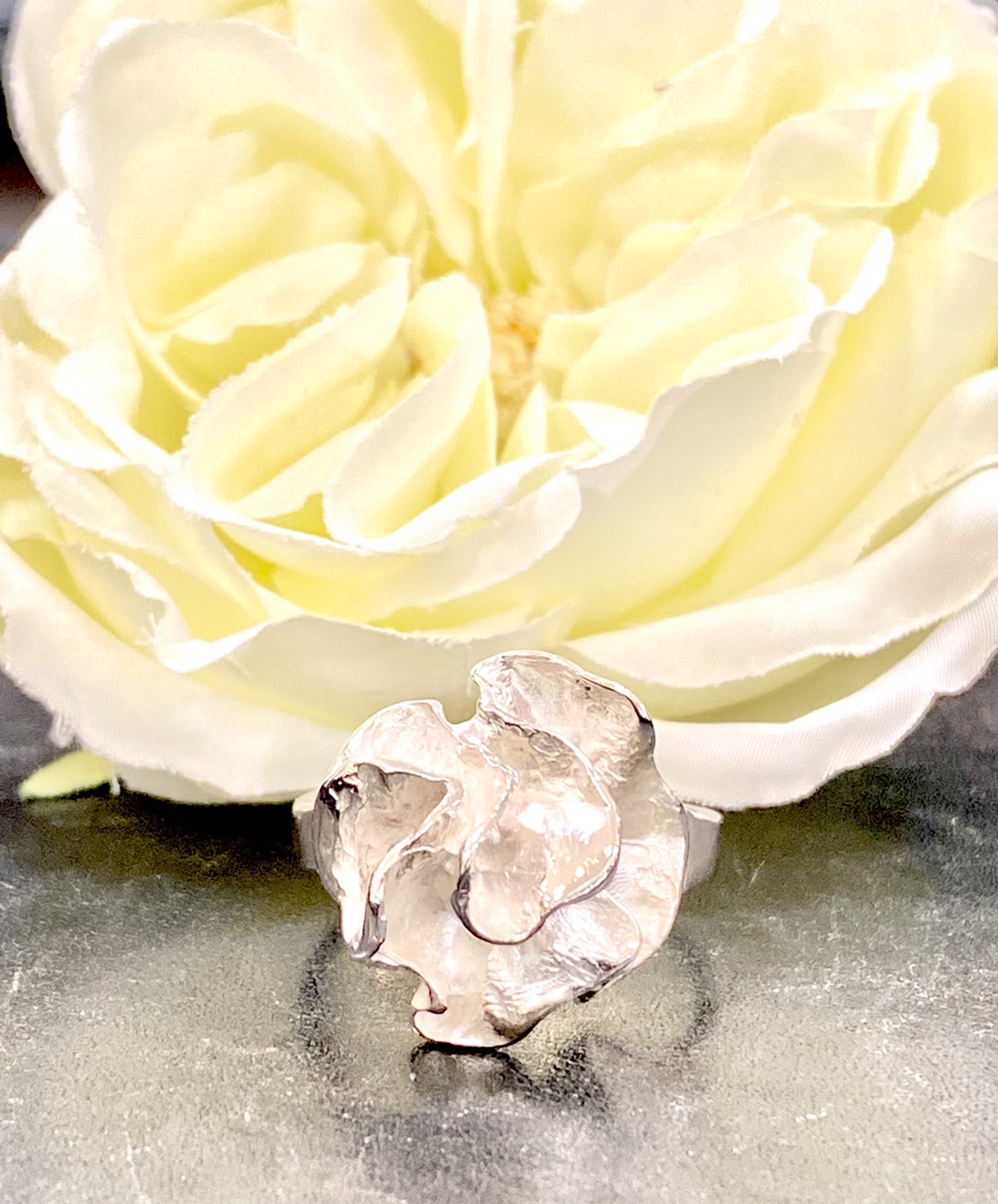 お花のモチーフの様なリングをサイズ直しでお預かり致しました。