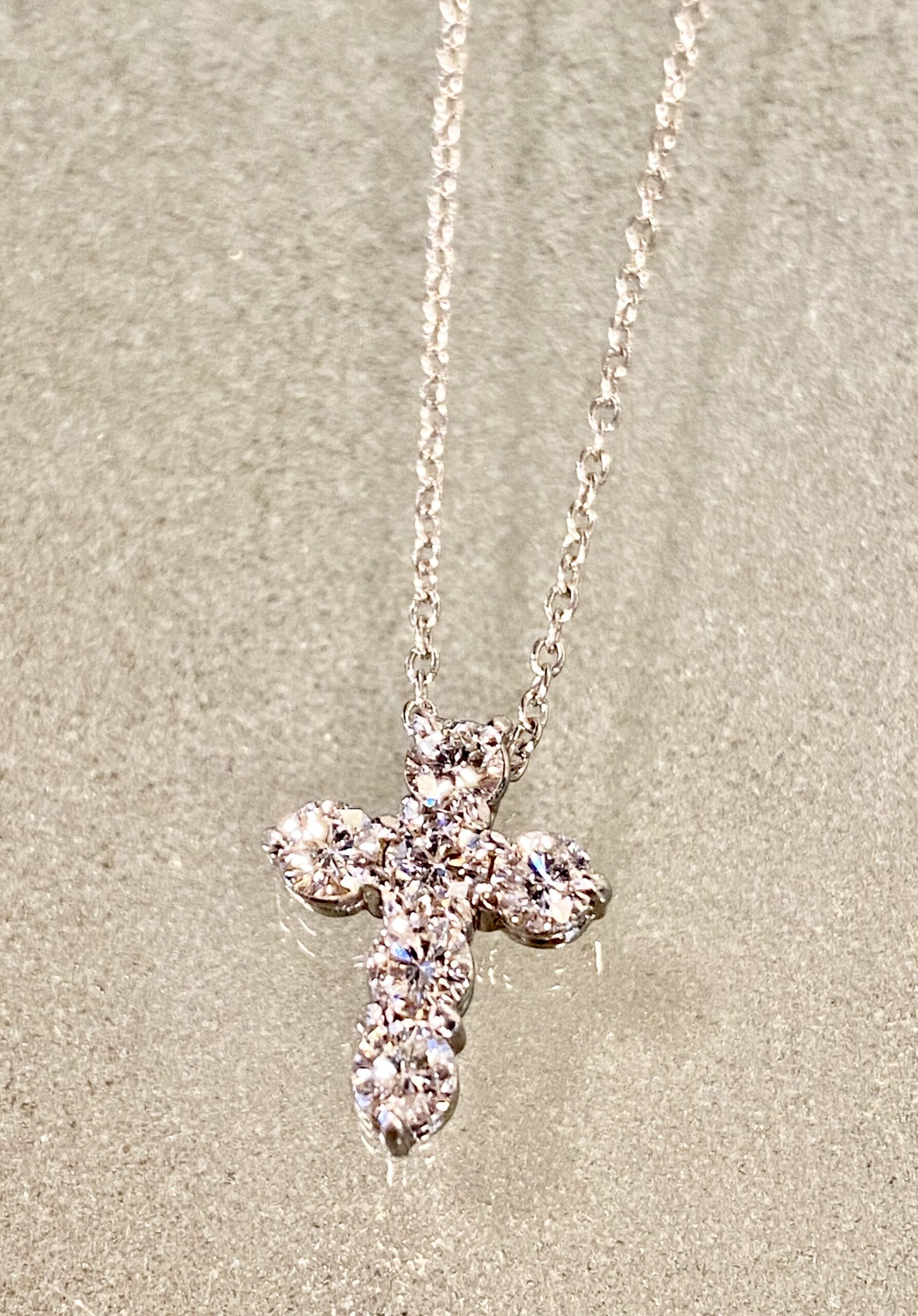 ダイヤモンド6石で十字架の形を表現したネックレスをお預かり致しました。