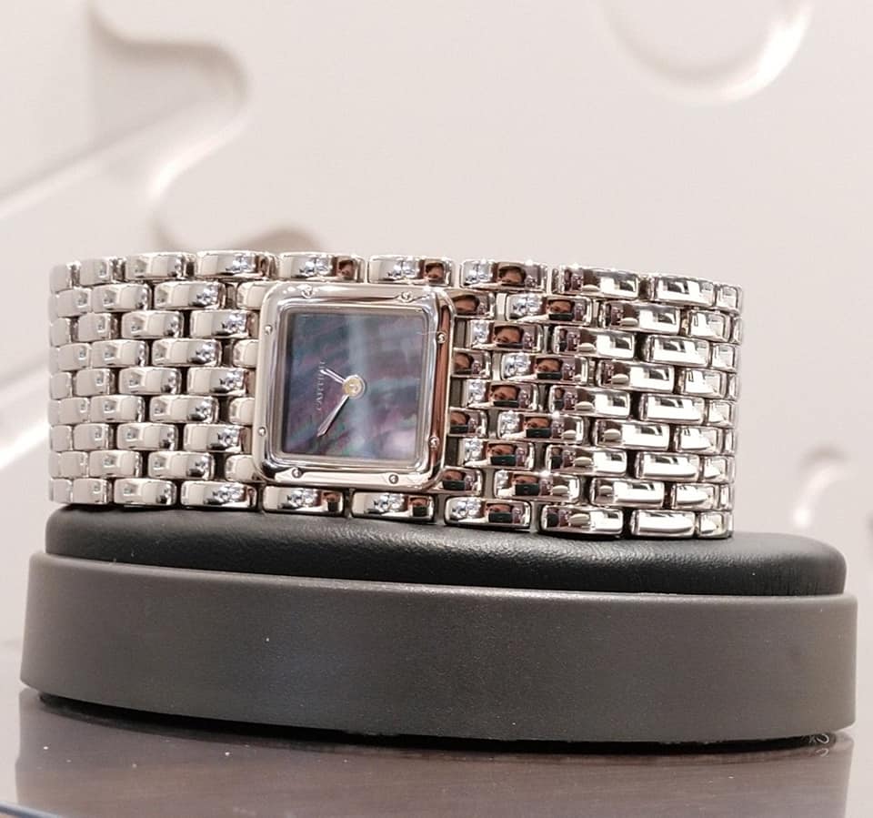 「王の宝石商、宝石商の王」とも称されるCartier。実に妖艶な輝きを放つブラック・マザーオブパールの色合いをご覧頂きたく、色々角度を変えて撮影した結果、ちょっと斜めになってしまいました……。