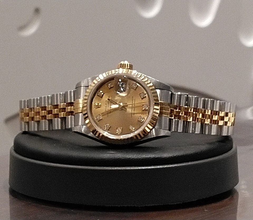 ロレックス人気シリーズ、デイトジャストは、実に豊富なバリエーションがあるのもチョイスする際の楽しみの一つでしょう。インデッックスにあしらった10ポイントのダイヤモンドが、お手許をキラリと彩ります。
