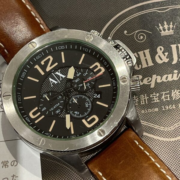 今回こちらのアルマーニのお時計 12時側のベルトコマ調整致しました。