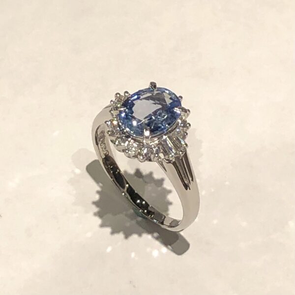 こちらのリングのサイズ直しが完了いたしました。 とても綺麗な石と美しいデザインになっています。