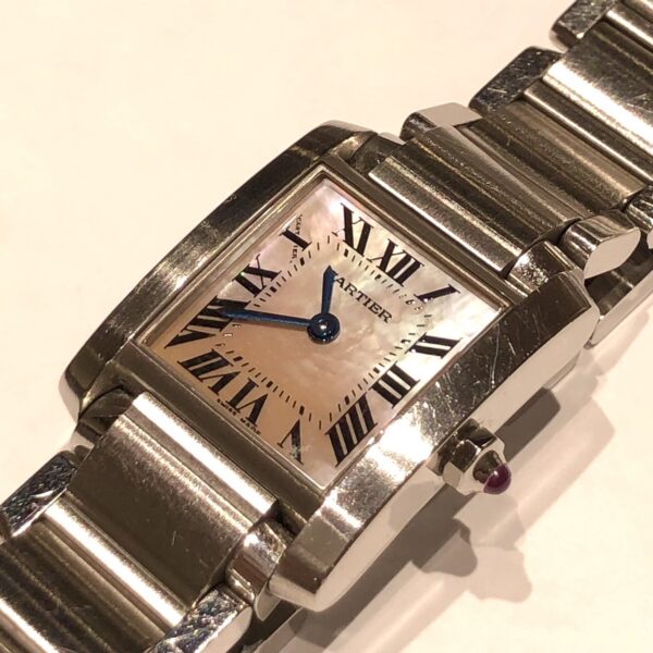 こちらのお時計をオーバーホールでお預かり致しました。 シェル文字盤とピンクのカボションがとても可愛らしいお時計になっています。