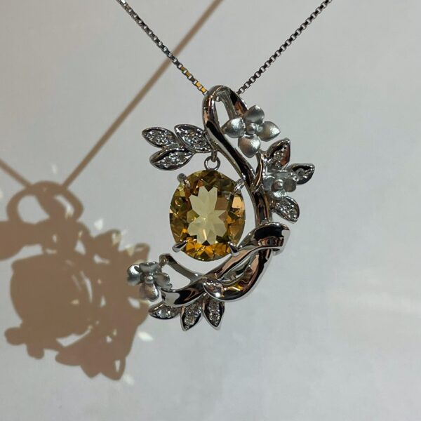 ジュエリーのリフォームが完了致しました! 透明度の高いシトリンを中心に存在感のある素敵なネックレスが完成致しました。