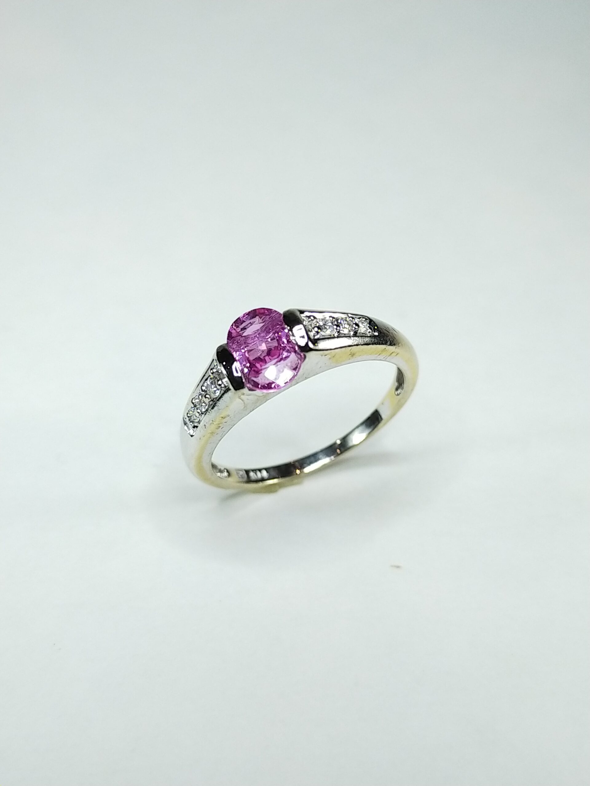 今回お預かり致しましたのはピンク色石付きWGリングの修理でございます。