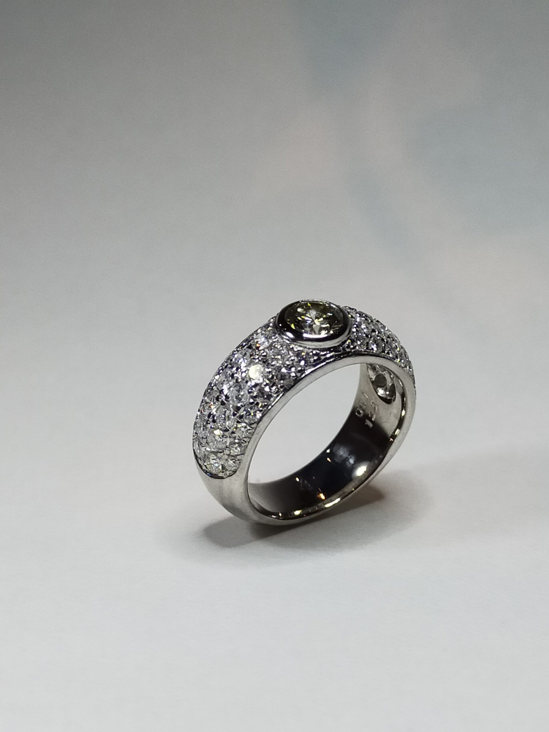 今回お預かり致しましたのは銀色透明石付きのリングでございます。