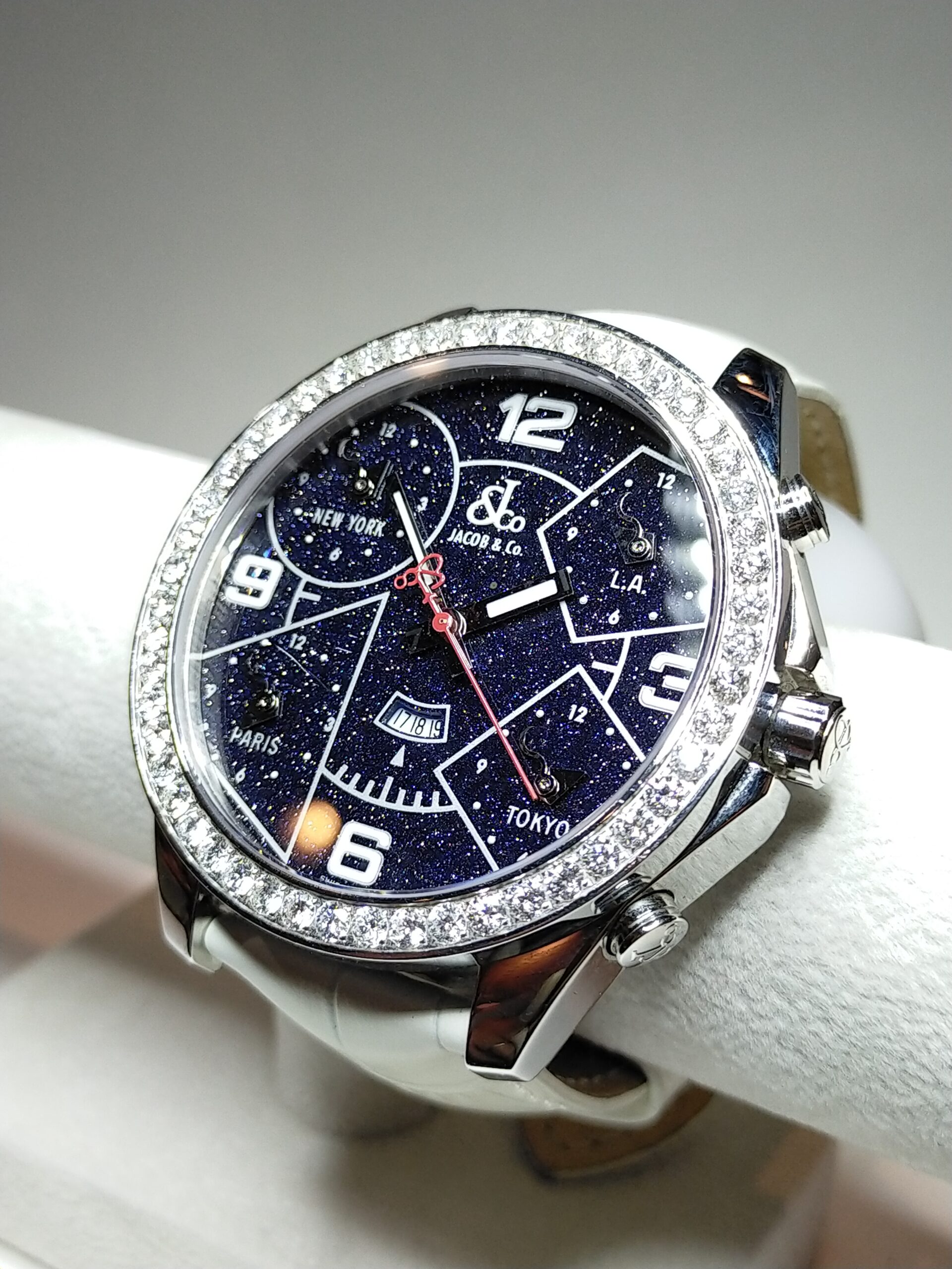 今回お預かり致しましたのはJACOB&Co.のファイブタイムゾーンウォッチでございます。