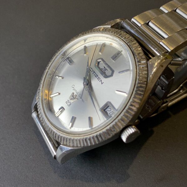 【CITIZEN クリスタル7】 本日、お預かりしましたお時計はCITIZENのクリスタル7です。 お父様の形見の時計で、他のお店では修理が出来ないと断られて、ずっと持っていたそうです。 2年ほど前に、一度だけTVCMを放送していた事を覚えてくださり、お持ちいただきました。
