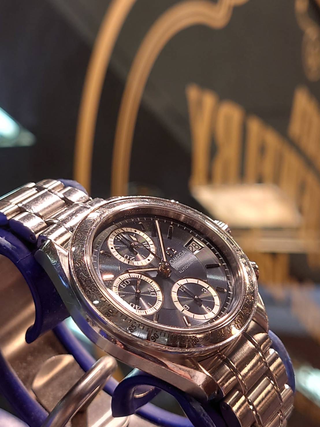 オメガ スピードマスター オートマチックデイトのオーバーホールを承りました。 オートマチックデイトはスピードマスターをより使いやすくした自動巻で、カレンダー表示もございます。 こちらはインダイヤルがシルバーで飾られた珍しいモデルの素敵なお時計です。