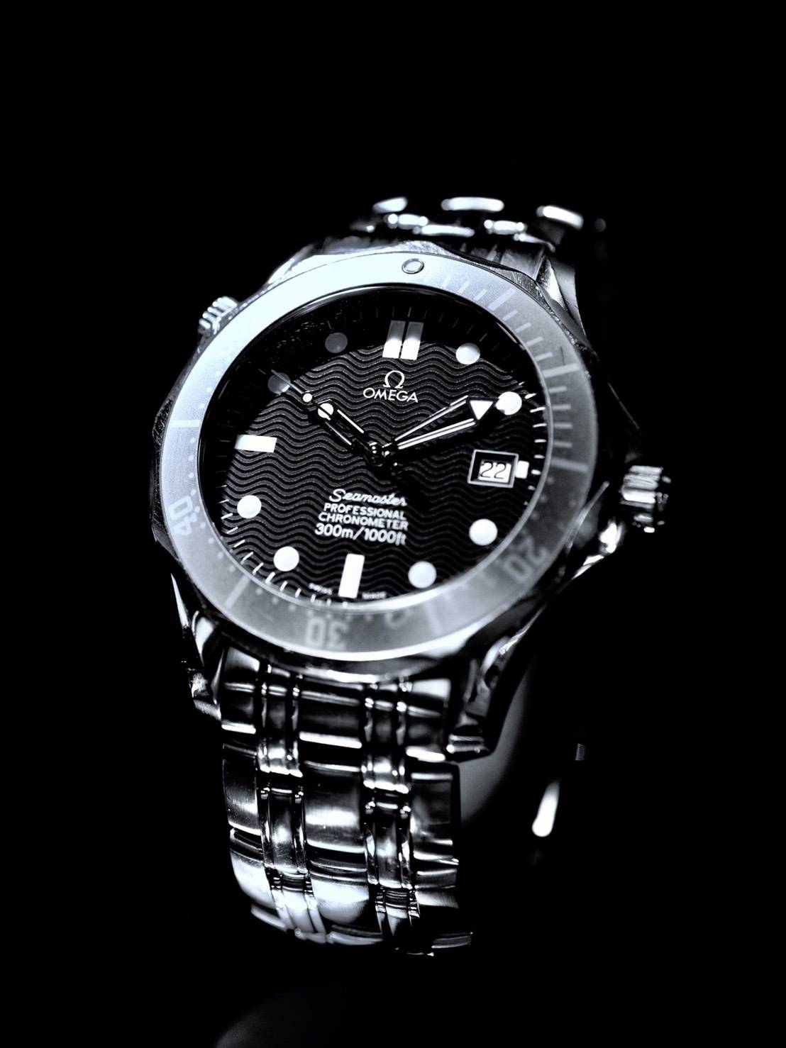 1993年に誕生したシーマスタープロフェッショナル、このコレクションからは、映画「007」シリーズにも採用されており、デザイン、機能美を兼ね備えた、人気モデルです。