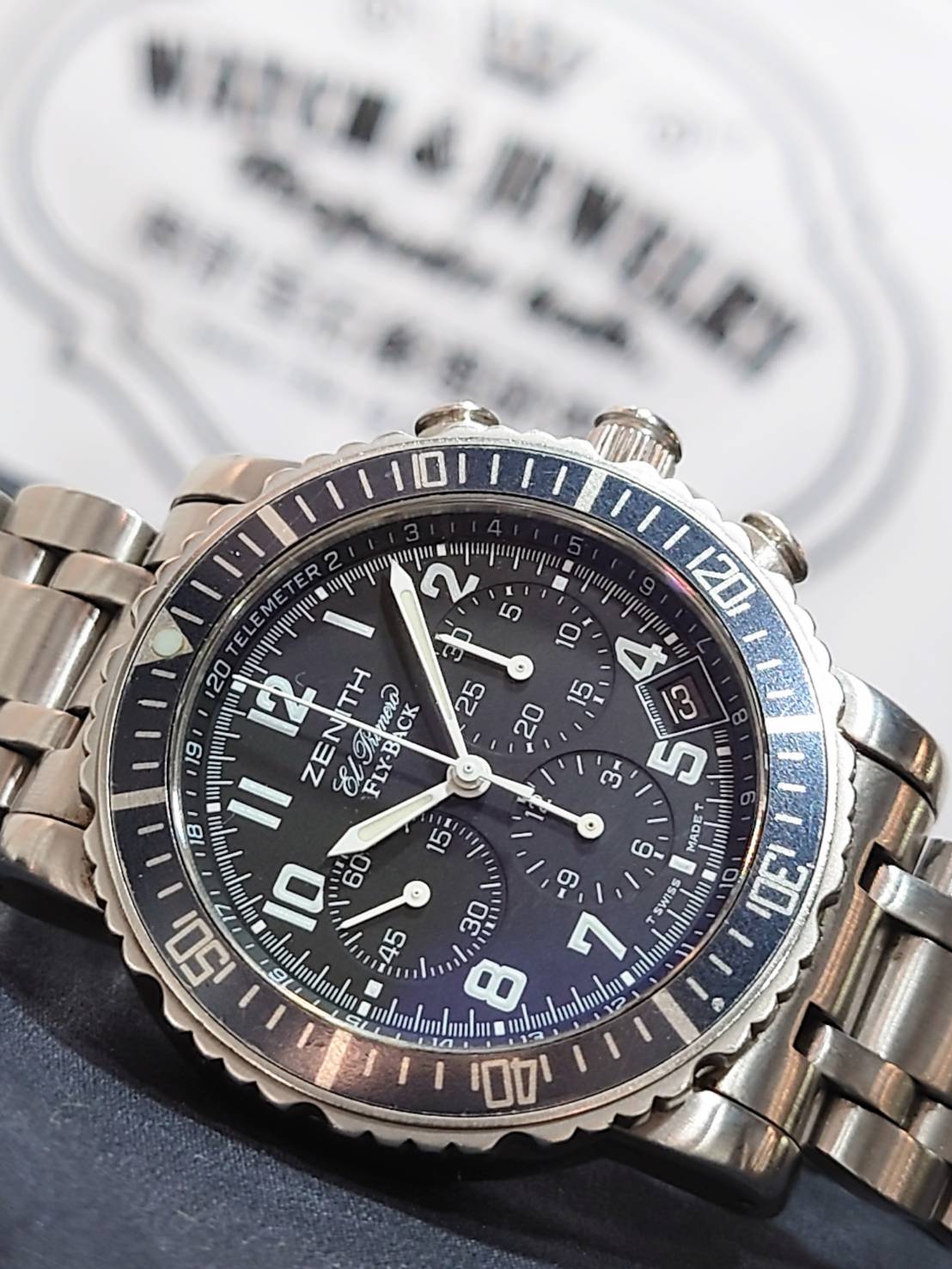 愛好家垂涎のブランド、ゼニスの傑作クロノグラフムーヴメント“エルプリメロ”に、フライバック機構を搭載したモデルです。