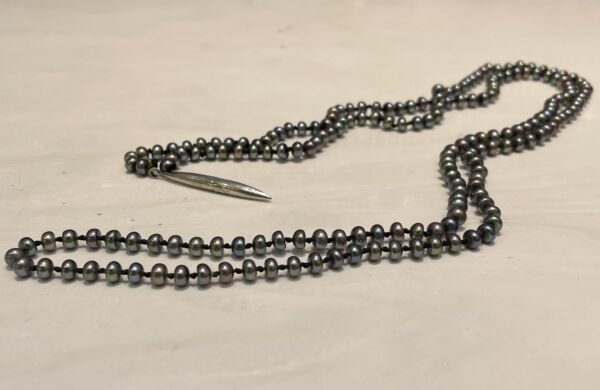 今回こちらの黒色玉ネックレスを糸替えでお預かりしました。